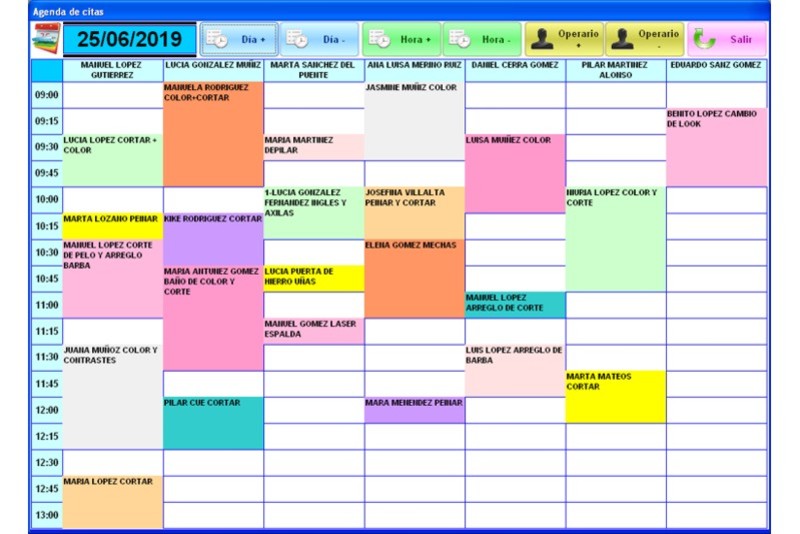 - Informes: Ofrece listados de ingresos diarios, ingresos mensuales con gráficas comparativas, ingresos mensuales por prestación de servicios con gráficas comparativas, ingresos mensuales por venta de productos con gráficas comparativas, ventas por día de la semana, ventas por hora en un rango de fechas (expresado en intervalos de 15 minutos), ventas y prestación de servicios detallados por operario en un período determinado, importe anual de compras por cliente, importe anual de ventas por operario, detalle de ventas por categoría entre fechas, informe de ventas por tipo de cliente, histórico de tickets con detalles de los servicios/productos incluidos, informe de ventas por modalidad de pago (efectivo, tarjeta, etc.), registro detallado de arqueos de caja, listados de pagos por caja entre fechas y agrupados por concepto, registro de devoluciones anotadas por trabajador, cálculo del ticket medio por prestación de servicios en el salón y por operario, cálculo del porcentaje de servicios técnicos en el salón y por operario, informe de ventas por sección (peluquería, belleza, etc.) y listado de clientes que no han visitado el salón en un período determinado.